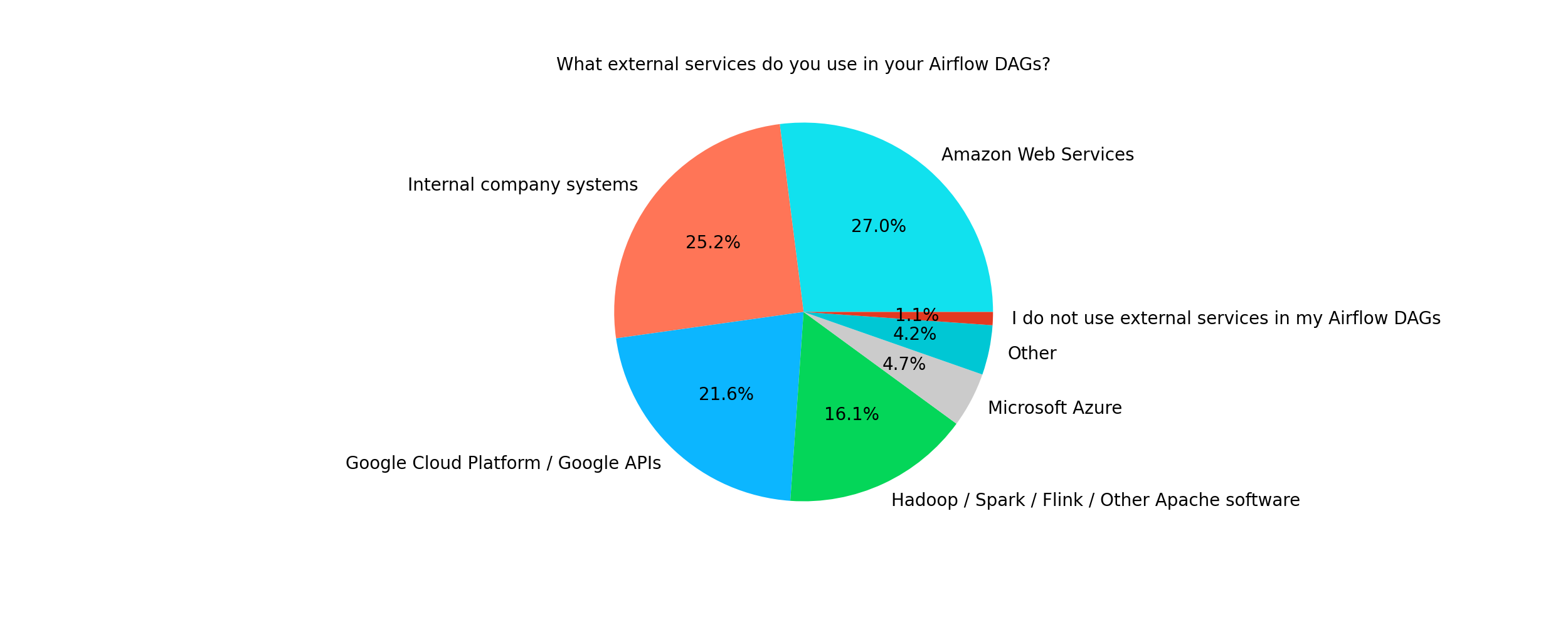 這意味著大約 69% 的使用者選擇使用 Postgres 作為其元資料庫。MySQL 是近 24% 使用者的選擇。其他回覆包括一些 MySQL 版本,如 MariaDB,或雲託管資料庫,如 Cloud SQL(Google Composer 使用)或 AWS Aurora。